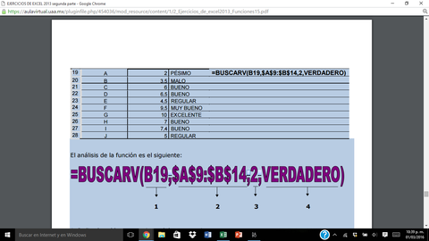 | Ejemplo: Un docente tiene la calificación de sus alumnos en notas numéricas, pero la institución en la que trabaja le pide que muestres el seguimiento, de acuerdo a ciertos criterios. | Debe completar su hoja de seguimiento para adecuarla a los requerimientos de la institución, usando una función BUSCARV que le permita relacionar los datos de su hoja con los datos de la matriz |