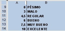 Ejemplo: Un docente tiene la calificación de sus alumnos en notas numéricas, pero la institución en la que trabaja le pide que muestre el seguimiento, de acuerdo a los siguientes criterios: | |