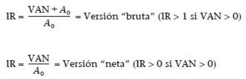| Índice de rentabilidad (IR) | Se utiliza para jerarquizar proyectos cuando el VAN y TIR dan resultados diferentes. |