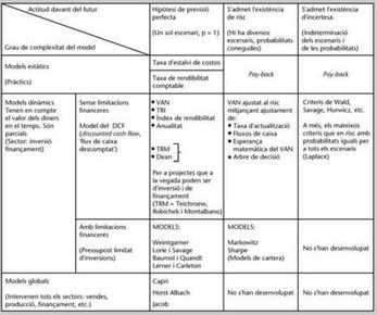 | Cuadro recopilatorio de los modelos de elección de proyectos de inversión: |