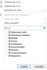 | Para ordenar los datos introducidos en el ejercicio, primero se tendrá que seleccionar los datos a ordenar y das clic en uno de los 2 botones, ya sea para ordenar ascendentemente o descendentemente | |