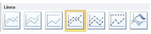| GRÁFICOS DE LÍNEAS | En un gráfico de líneas se pueden trazar datos que se organizan en columnas o filas de una hoja de cálculo. Los gráficos de líneas pueden mostrar datos continuos en el tiempo, establecidos frente a una escala común y, por tanto, son idóneos para mostrar tendencias en datos a intervalos iguales. En un gráfico de líneas, los datos de categoría se distribuyen uniformemente en el eje horizontal y todos los datos de valor se distribuyen uniformemente en el eje vertical. |