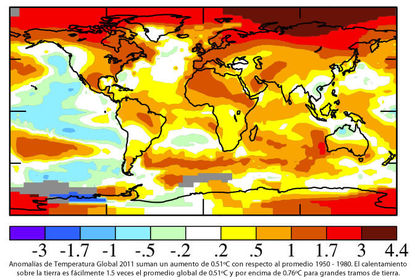 | "CALENTAMIENTO GLOBLAL" Si se revisa el gráfico de las temperaturas de la superficie terrestre de los últimos 100 años, se observa un aumento de aproximadamente 0.8ºC, y que la mayor parte de este aumento ha sido en los últimos 30 años. | |