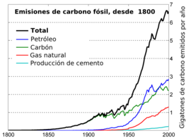 | "EFECTO INVERNADERO" En la Tierra a partir del año 1950 se dispararon las emisiones debidas a la combustión de combustibles fósiles, tanto las de petróleo como las de carbón y gas natural. | |