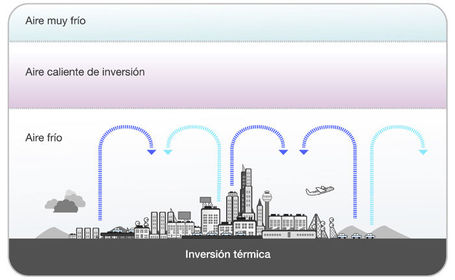 | "INVERSION TERMICA" es un proceso natural que afecta a la circulación del aire en las capas bajas de la atmósfera. Aunque por sí sola no representa un riesgo para la salud, aumenta los efectos de la contaminación atmosférica. |