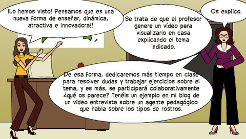 | AULA INVERTIDA | Se basa en el estudio en casa y la práctica en la clase.En este sentido las nuevas tecnologías de la información permiten al profesor impartir sus conocimientos en línea reservando el tiempo en clase para la formación más práctica. |