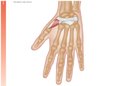 FLEXORES DE LA MUÑECA (palmar mayor, palmar menor, cubital ant.) O. cara anterior del epicóndilo medial I. huesos del carpo, metacarpiano y falanges N. Mediano C6-8; Mediano C6-8, T1; C7-8, T1 A. Flexión muñeca; la mueve en abducción (PM), aduce la muñeca (CA). | |