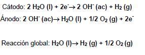 | Hidrólisis del Agua, utilizado en las plantas eléctricas para utilizar el dihidrógeno como combustible. | |
