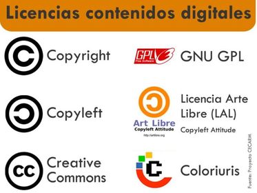 | - Licencia arte libre: La Licencia Arte Libre es una licencia Copyleft, sometida al derecho francés, que permite copiar, distribuir y modificar libremente la obra que protege, respetando los derechos morales de su autor. | Coloriuris es un sistema internacional de gestión y cesión de derechos de autor, con validez legal mundial.que garantiza, a través de un contrato legalmente celebrado entre dos partes, que, de darse una indebida utilización de los contenidos objeto de la cesión de forma contraria a la que ha dispuesto, su titular tendrá una herramienta jurídica que podrá esgrimir ante los tribunales contra el infractor. |