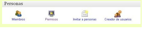 | PERSONAS | Varias opciones que son referentes a diferentes ajustes que pueden realizar, como agregar o eliminar un miembro, definir si es pública o privada. |