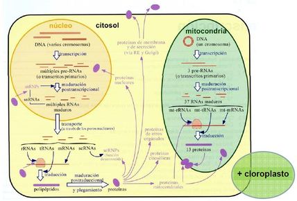 | Esquema general transcripción-traducción célula eucariota. |