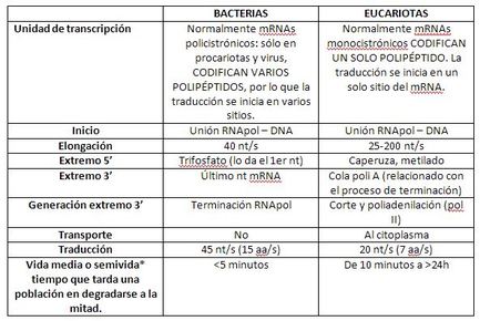 | Comparación de la transcripción entre procariotas y eucariotas |