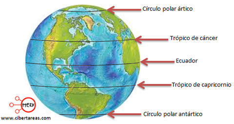 | TROPICOS | Son círculos paralelos al ecuador el circulo que esta ubicado en el hemisferio trópico de Cáncer y el de capricornio. |