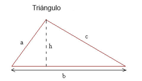 | Perímetro=a + b + c p = Semiperímetro = \(\frac {a+b+c}{2}\) Área = \(\frac {b × h}{2}\) Fórmula de Herón = \(\sqrt {p·(p-a)·(p-b)·(p-c)}\) | |