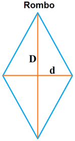 | Perímetro = 4 × lado Perímetro=2×\(\sqrt{D^2+d^2}\) Área = \(\frac{D×d}{2}\) | |