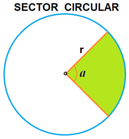 | Área = \(\frac {\pi × r^2 ×\alpha}{360}\) | |