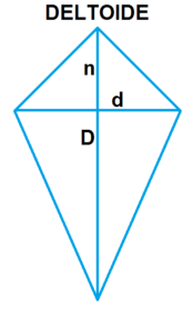 | Perímetro = 2x\(\sqrt{n^2+(d/2)^2}\)+ 2×\(\sqrt{(d/2)^2+(D-n)^2}\) Área = \(\frac {D×d}{2}\) | |