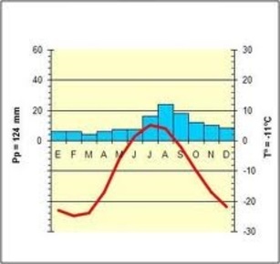 | CLIMA CONTINENTAL - Precipitacions: abundants a l'hivern i escasses a l'estiu. - Temperatures: fredes a l'hivern i caloroses a l'estiu. | |