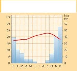 CLIMA SUBTROPICAL - Precipitacions: Escasses tot l'any, més freqüents a l'hivern i escasses a l'estiu. - Temperatures: Constants tot l'any. Amb poques variacions. Més altes a l'estiu. |
