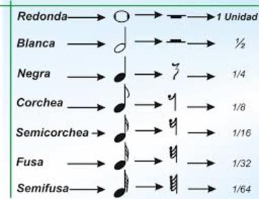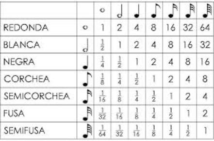 | Tabla de duración de las figuras y sus equivalencias. |