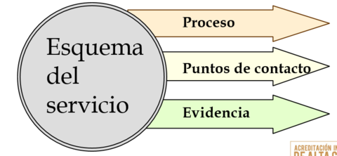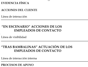 | ESQUEMA DE SERVICIO Herramienta para describir en forma simultánea el proceso del servicio, los puntos de contacto con los clientes y la evidencia del servicio desde la perspectiva del cliente. | |