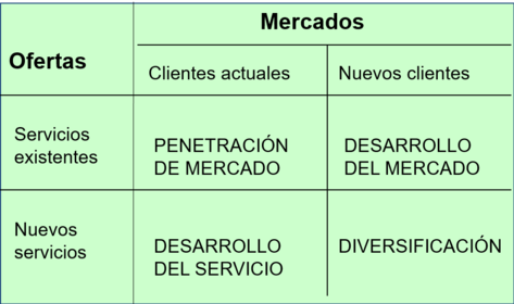 | Matriz de estrategia de un nuevo servicio para identificar nuevas oportunidades de crecimiento | PROCESO DE SERVICIOS Conjunto de actividades (procedimientos) coordinadas y organizadas que se realizan o suceden, alternativa o simultáneamente, con el fin de permitir el diseño, producción y entrega de un servicio de forma adecuada al cliente |
