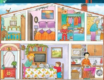 | -Regarde l´image adjointe et explique ce que les membres de la famille sont en train de faire. -Imagine qu´il s´agit de la maison de ta grand-mère et explique pourquoi tu aimes ou n´aimes pas la visiter. | |