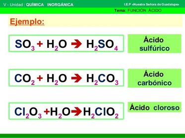 FUNCIÓN ÁCIDO Se producen entre la combinación de un oxido ácido con agua. | |