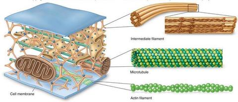 | VESÍCULA DE TRANSPORTE Transporta lípidos y proteínas entre el RE, el aparato de Golgi y la membrana plasmática. | CITOESQUELETO Soporte estructural de las células; facilita el movimiento de los orgánulos. |