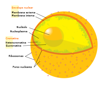 | ENVOLTURA NUCLEAR Segrega la cromatina (ADN + Proteína) del citoplasma. | NUCLEOLO Síntesis de ARN ribosómico. |