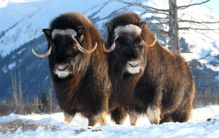 | FAUNA: Poseen largos pelajes y están protegidos por capas gruesas de grasa debajo de su piel. Algunos de ellos son de color blanco, lo que les permite camuflarse y huir de sus depredadores. Renos, caribús, liebres árticas, zorros árticos, lobos, bueyes almizcleros, osos polares y varias especies de aves como halcones y pingüinos. En los litorales viven focas y lobos marinos. -Zorro Ártico | -Bueyes almizcleros |