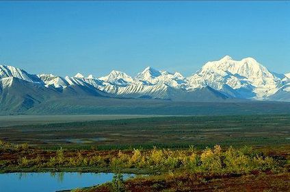 | CLIMA: El clima de tundra se sitúa entre los 60º y los 75º de latitud. Se sitúa en una estrecha franja alrededor de los hielos del Ártico, Groenlandia y el continente Antártico. En este clima encontramos masas de aire polar marítimo, frías y húmedas, que dominan en verano y traen las lluvias; masas de aire polar continental frías y secas y masas de aire ártico muy frías y secas, que dominan el resto del año. -Islas Adyacentes | -Denali National Park, Mt McKinley |