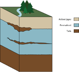 | SUELO: El suelo está cubierto de nieve. No llueve mucho y además el agua permanece helada muchos meses, por lo que no está disponible para las plantas. Las temperaturas bajas o medianas durante la mayor parte del año, así como la humedad generalmente elevada dan lugar a la formación de suelos de tipo podzol, suelos ácidos que favorecen la formación de turberas. -Denali, Alaska | -Sur de Alaska |