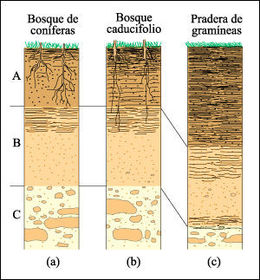 | SUELO: LOS SUELOS TÍPICOS SON LOS CHERNOZEMS, ALCALINOS DEBIDO A QUE EL MOVIMIENTO NETO DEL AGUA ES HACIA ARRIBA, ARRASTRANDO CALCIO QUE SE PRECIPITA COMO CARBONATO DE CALCIO. LOS CHERNOZEMS DE LAS PRADERAS TIENEN HORIZONTES SUPERIORES NEGRUZCOS DEBIDO A LA DESCOMPOSICIÓN CONSTANTE DE LAS GRAMÍNEAS FORMANDO HUMUS NEGRO. LOS PASTIZALES DE GRAMÍNEAS ALTAS TIENEN SUELOS MÁS MARRONES, MÁS RICOS EN SUS ESTRUCTURAS DE LAMINA. | -Pastizal/Pastura |