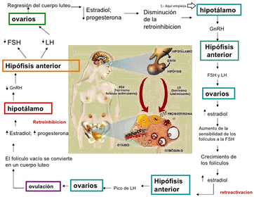 | Qué sucede al comienzo de cada ciclo ovárico? | -15 a 20 folículos primarios son estimulados a crecer por la FSH. -Sólo uno de los folículos alcanza su madurez total (folículo dominante) y se expulsa sólo un ovocito, los demás se atresian. |
