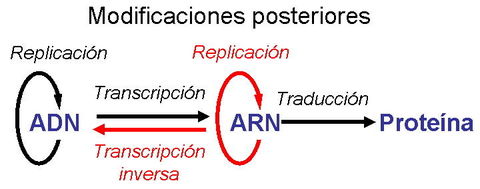 | Reestructurar el problema: En base a lo anterior, podemos concluir que el flujo de información es bidireccional y que incluso aparecen nuevos elementos que no poseen material genético (ADN o ARN) y que son capaces de alterar las funciones normales y/o regulación de una célula. Por ejemplo: Los Priones. | |