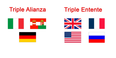 BANDOS DE LA PRIMERA GUERRA MUNDIAL | Triple Entente o Aliados: Francia, Gran Bretaña y Rusia.. Triple Alianza o Potencias del Eje: Italia, Alemania y Austria-Hungría. |