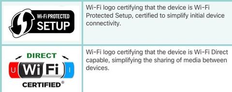 | The Wi-Fi Alliance certifies Wi-Fi and the following product compatibility: * IEEE 802.11a/b/g/n/ac/ad compatible * IEEE 802.11i secure using WPA2™ and Extensible Authentication Protocol (EAP) * Wi-Fi Protected Setup (WPS) to simplify device connections | * Wi-Fi Direct to share media between devices * Wi-Fi Passpoint to simplify securely connecting to Wi-Fi hotspot networks * Wi-Fi Miracast to seamlessly display video between devices ** Note: Other Wi-Fi certifications products are available such as WMM® (Wi-Fi Multimedia™), Tunneled Direct Link Setup (TDLS), and WMM-Power Save. |