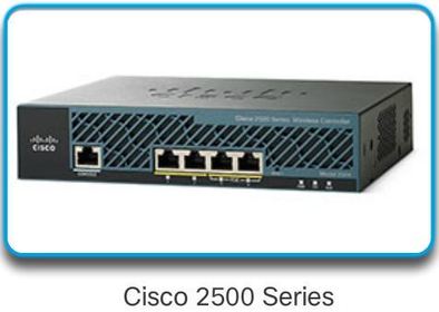 | Cisco 2500 Series * Standalone, small form-factor appliance. * Four 1 Gigabit Ethernet ports (two PoE). * Support up to 75 access points and 1000 clients. * PCI functionality for scanner and kiosk. | |