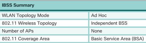 | Ad Hoc Mode * Note: The IEEE 802.11 standard refers to an ad hoc network as an independent basic service set (IBSS). * A variation of the ad hoc topology is when a smart phone or tablet with cellular data access is enabled to create a personal hotspot. This feature is sometimes referred to as: Tethering. | |