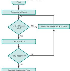 | Carrier Sense Multiple Access with Collision Avoidance * Wi-Fi systems are half-duplex, shared media configurations; therefore, wireless clients can transmit and receive on the same radio channel. This creates a problem because a wireless client cannot hear while it is sending; thus, making it impossible to detect a collision. To address this problem, the IEEE developed an additional collision avoidance mechanism called the Distributed Coordination Function (DCF). Using DCF, a wireless client transmits only if the channel is clear. All transmissions are acknowledged; therefore, if a wireless client does not receive an acknowledgment, it assumes a collision occurred and retries after a random waiting interval. | |