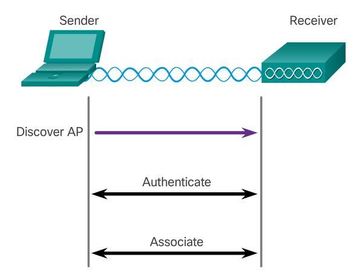 | Wireless Clients and Access Point Association Management frames are used by wireless devices to complete the following three-stage process: 1. Discover new wireless AP. 2. Authenticate with AP. 3. Associate with AP. Para asociarse, un cliente inalámbrico y un AP deben acordar parámetros específicos. Para permitir la negociación de estos procesos, se deben configurar los parámetros en el AP y posteriormente en el cliente. | |