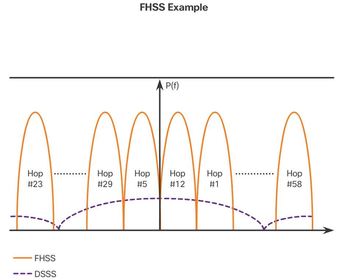 | Frequency Channel Saturation * Frequency-hopping spread spectrum (FHSS) - FHSS also relies on spread-spectrum methods to communicate. It is similar to DSSS but transmits radio signals by rapidly switching a carrier signal among many frequency channels. With the FHSS, sender and receiver must be synchronized to “know” which channel to jump. This channel hopping process allows for a more efficient usage of the channels, decreasing channel congestion. ** Walkie-talkies and 900 MHz cordless phones also use FHSS, and Bluetooth uses a variation of FHSS. FHSS is also used by the original 802.11 standard. | |
