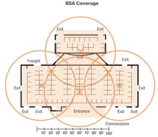 | Planning a WLAN Deployment When these points have been addressed, estimate the expected coverage area of an AP. This value varies depending on the WLAN standard or mix of standards that are deployed, the nature of the facility, the transmit power that the AP is configured for, and so on. Always consult the specifications for the AP when planning for coverage areas. ** BSAs represent the coverage area provided by a single channel. An ESS should have 10 to 15 percent overlap between BSAs in an ESS. With a 15 percent overlap between BSAs, an SSID, and non-overlapping channels (i.e., one cell on channel 1 and the other on channel 6), roaming capability can be created. | |