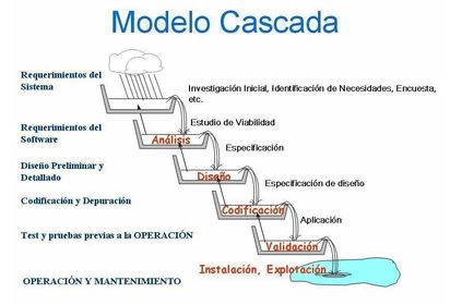 | Modelo en cascada | Separa y distingue las distintas fases de especificación y desarrollo de software |
