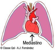 | Se localiza centralmente en la cavidad torácica, contiene pericardio el corazón etc. | MEDIASTINO MEDIO |