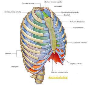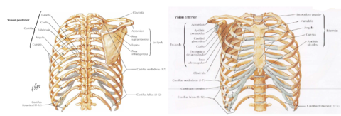 | ESQUELETO DEL TÓRAX | Incluye -Esternón -Vértebras torácicas -Costillas -Cartílagos costales |