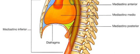 | MEDIASTINO | Límites -Anterior: Esternón -Posterior: vértebras torácicas -Superior: Horquilla esternal -Inferior: Diafragma -Lateral: cavidades pleurales |
