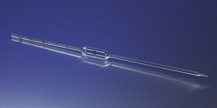 | Pipeta volumétrica. Es utilizada para medir o trasvasar pequeñas cantidades de líquido. | |