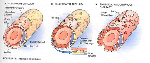 | Capilares | Son: Continuos Fenestrados Discontinuos- sinusoides |